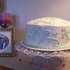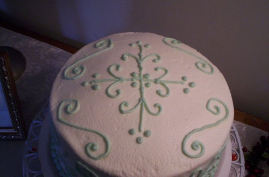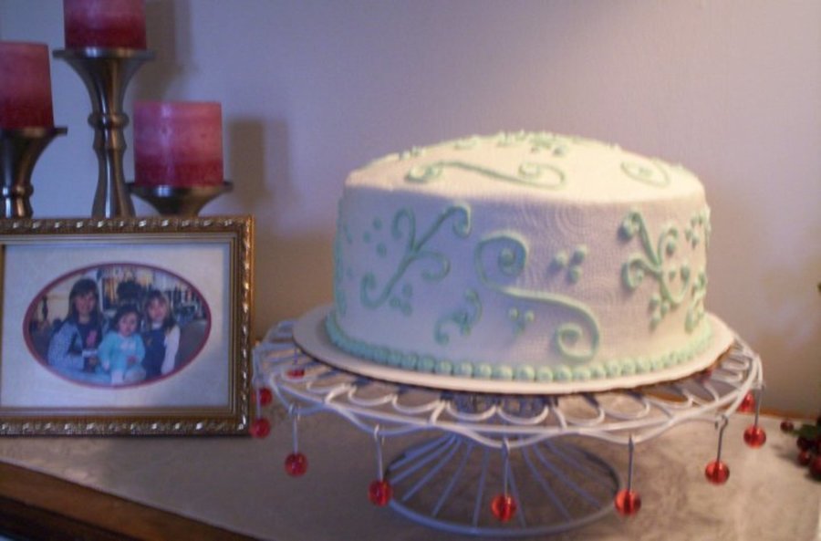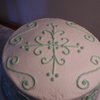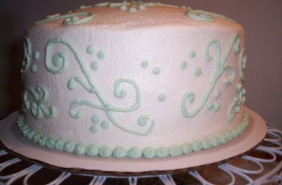 Just a practice cake. Golden butter cake and raspberry filling with buttercream icing. Instead of a Viva paper towel to smooth the buttercream I only had a regular paper towel which accounts for the swirls.