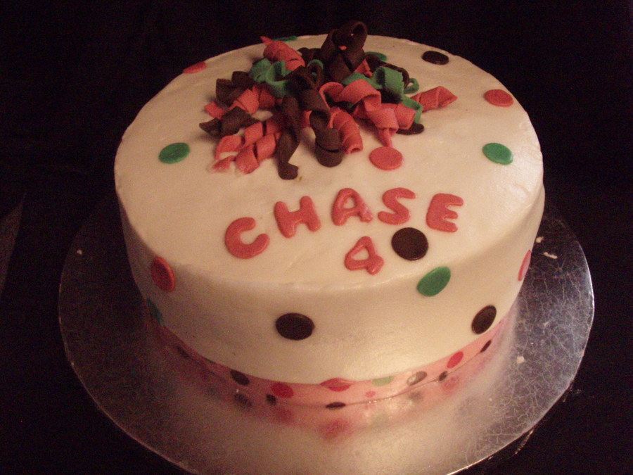 buttercream and fondant. curly cues done on dowel rod to dry enough so i could drape them over rolling pin to dry the rest of the way for curve of bow. next time i know to use gumpaste for the bow :)