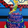 A birthday cake I made for two adorable little girls. Airbrushed blue and purple to give it a vibrant color. Letter are done with cutter/tabbits. Thanks for looking.