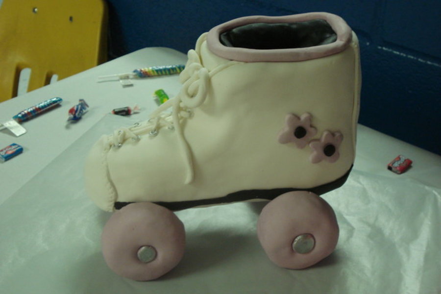 Rice Krispy treats covered in strawberry buttercream and fondant.