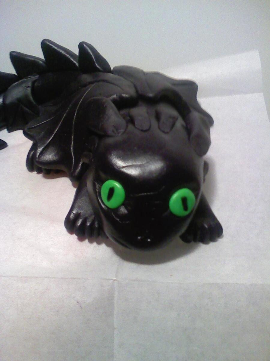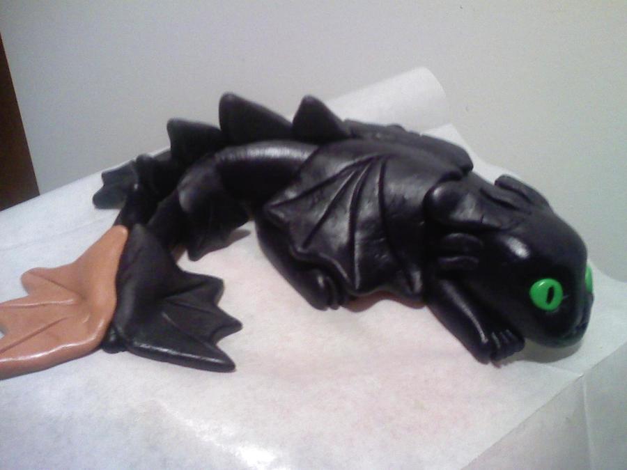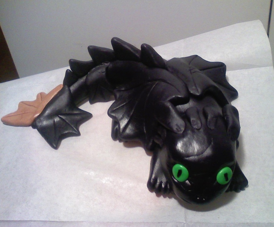 Toothless from How to Train Your Dragon. For my friends kids Bday he wanted a castle cake with toothless dragon on top. Thankfully there was a very helpful picture on here by Tamwiz, thank you for the inspiration. I had fun making this, and it turned out much better than I thought it was going to. TYFL!