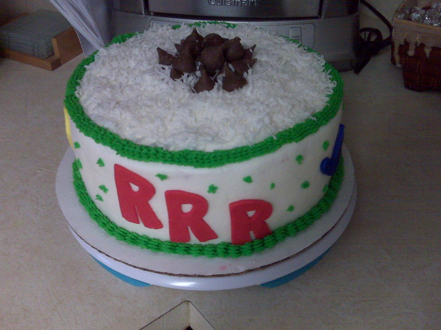 Birthday cake with BC, coconut and Hershey's kisses. This cake made me curse in 4 different languages.