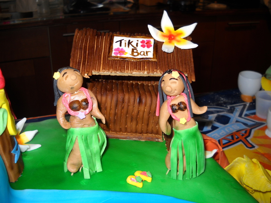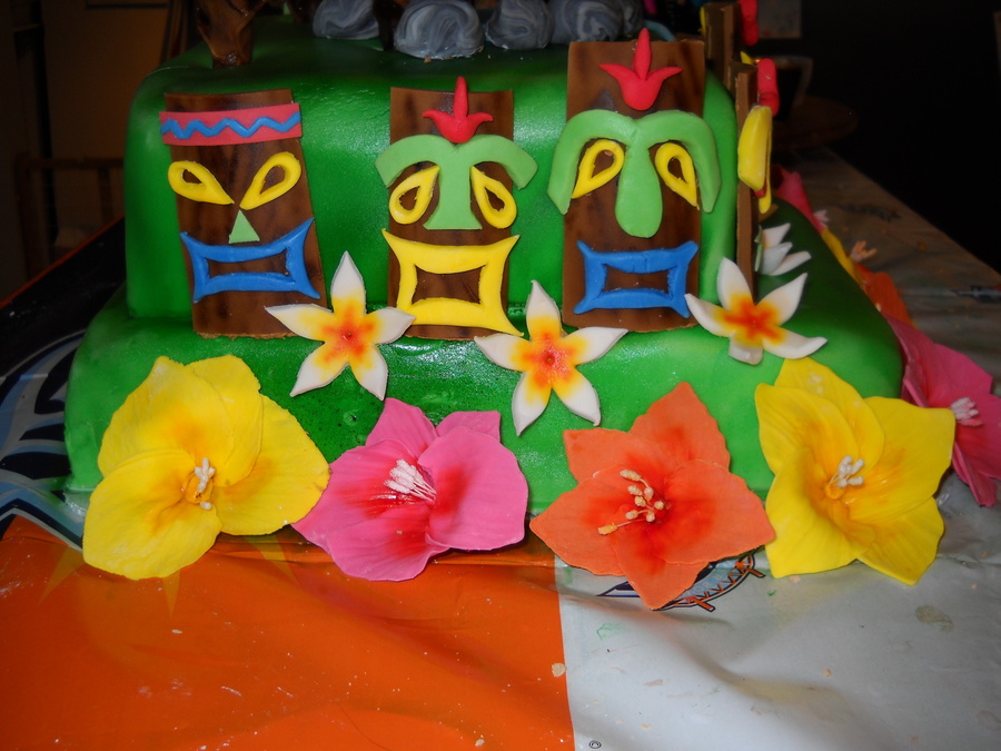 Luau Graduation Cake, all fondant... the pieces took me like 3 days but i'm proud.