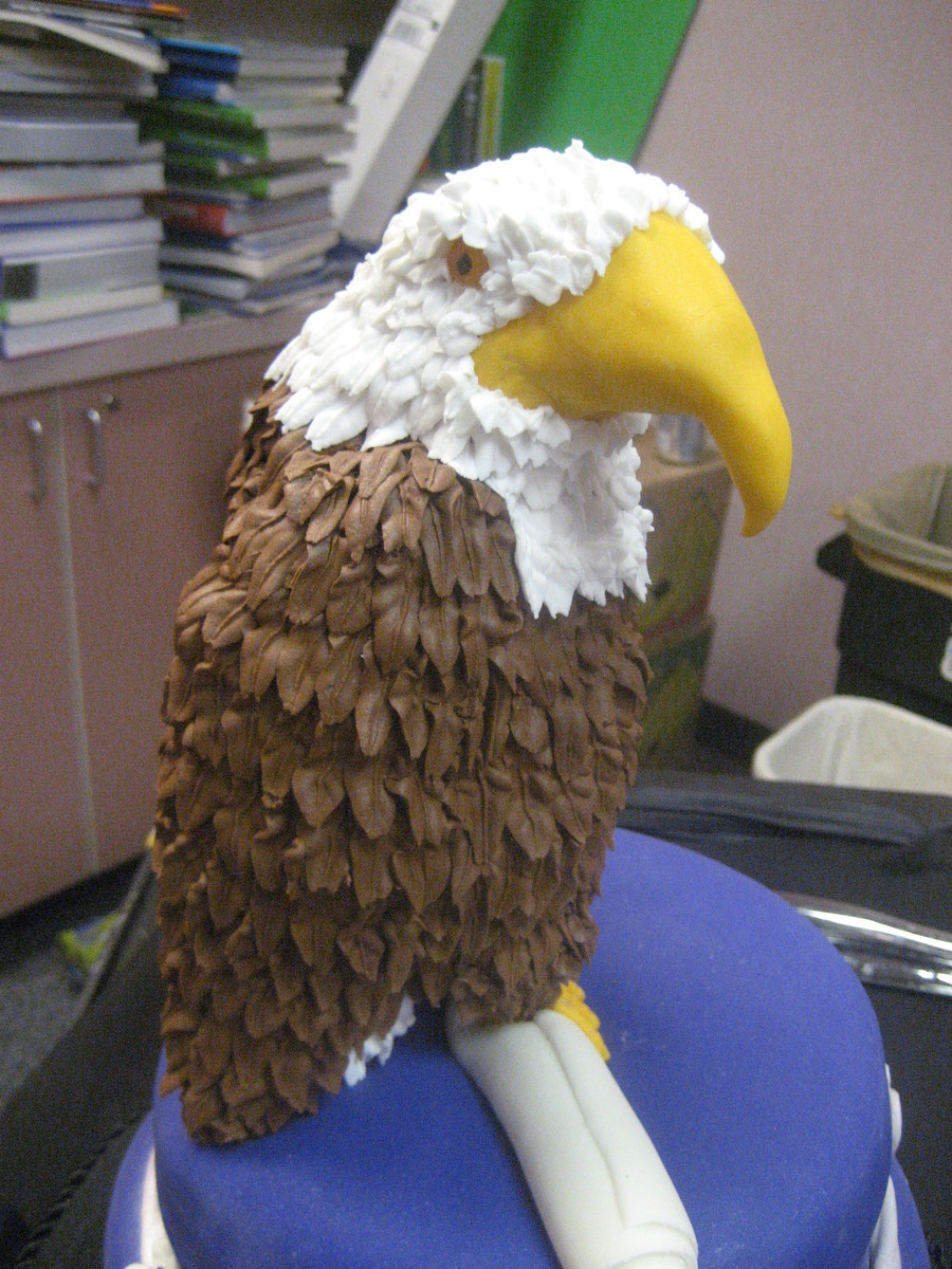 For my daughter's 8th grade class. RKT eagle with royal icing. First attempt at using RKT for modeling. Was a little rushed, we had just gotten back from the week long 8th grade camping trip, when I was asked to do it for the next day. Overall happy with the eagle.