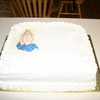 This is a bible with the hands of God. It was made with buttercream icing and fondant.