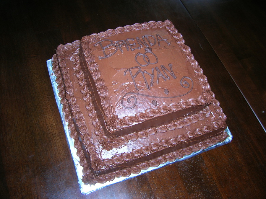 This is simple 2 tiered chocolate cake for a bride/groom shower.