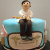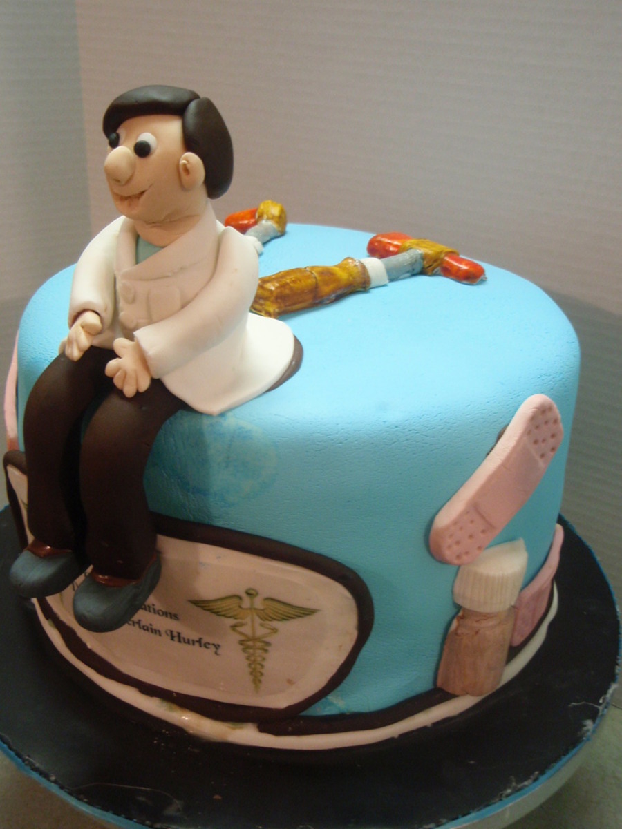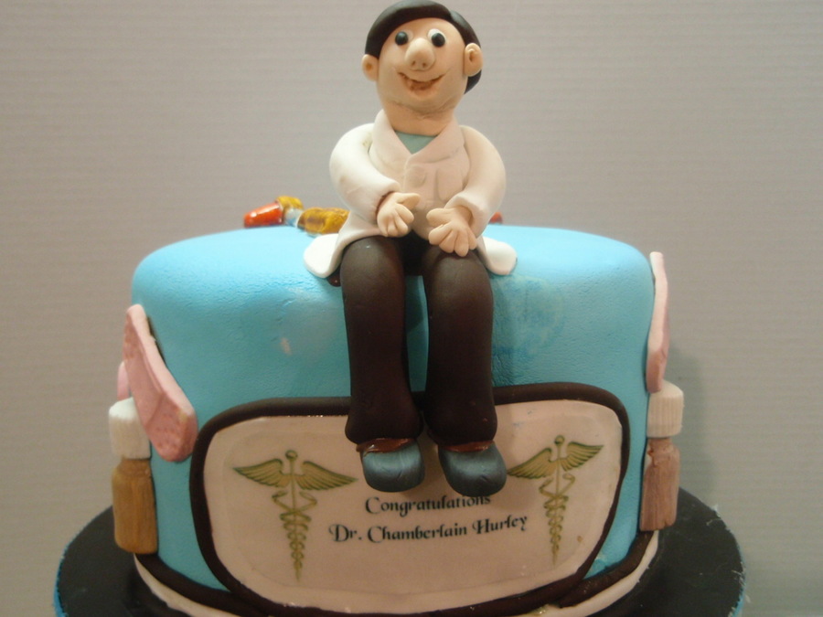 Triple layer chocolate/chocolate chip created for a med school graduate, 100% edible, all fondant. My first fondant figure... need much more practice! :)