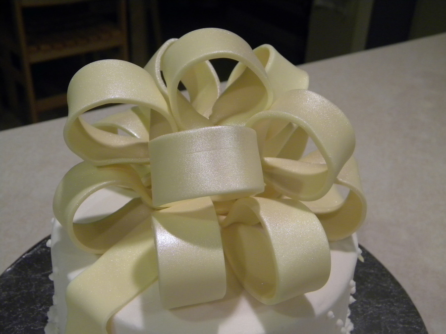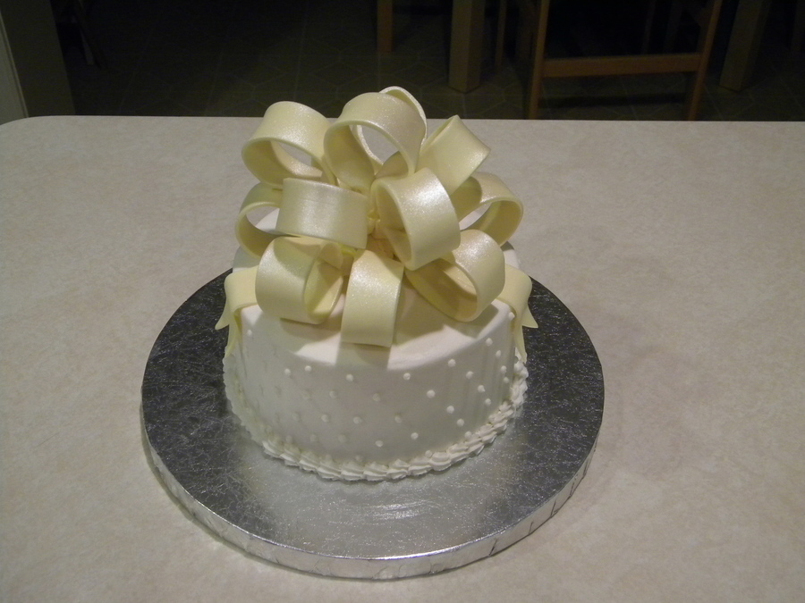 6" cake. Vanilla and Almond pound cake, butter cream frosting, and a fondant bow.