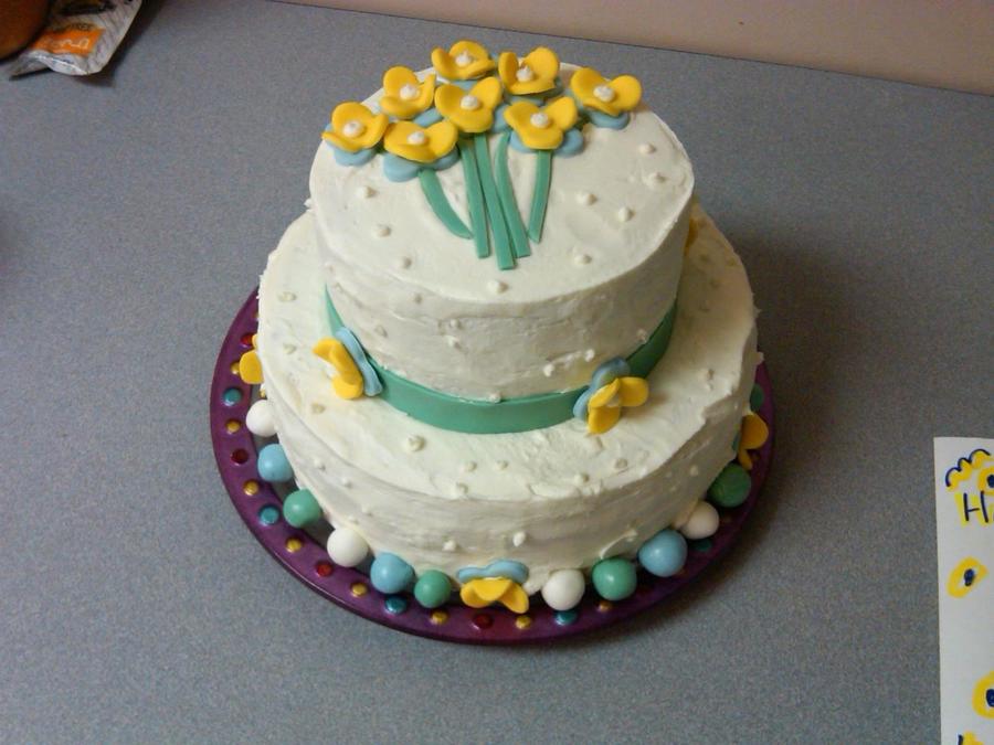 Vanilla pound cake with lemon-lime BC and fondant decorations