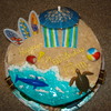Beach cake w/coordinating sand castle smash cake I made for a 1st birthday party at a splash park. All buttercream w/sifted brown sugar for sand, piping gel for water, royal icing palms piped over the bottom of small bowls, fondant towels and beach ball painted w/food writer, fondant pail and shovel handle, molded candy shells, hersey nuggets treasure chests. Sea Creatures and surf boards are plastic. Drink umbrella. Thanks to everyone on cc for the inspiration and tips!!