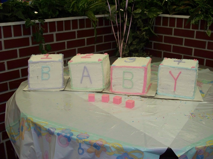 This is a set of 4 cakes I did for my cousin's baby shower. They are each 4 layers. Each block is a different flavor with buttercream icing and cream cheese filling.