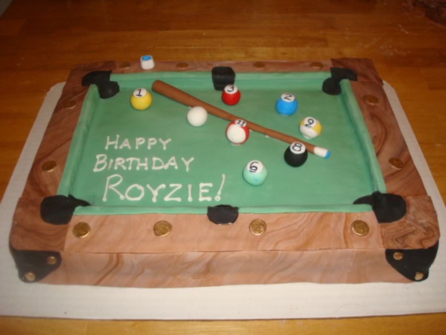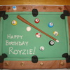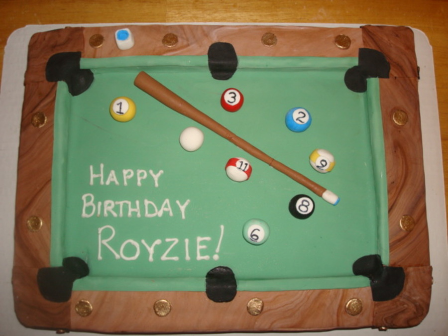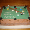 My first pool table cake... yellow cake with vanilla buttercream frosting. All of the decorations are fondant.