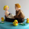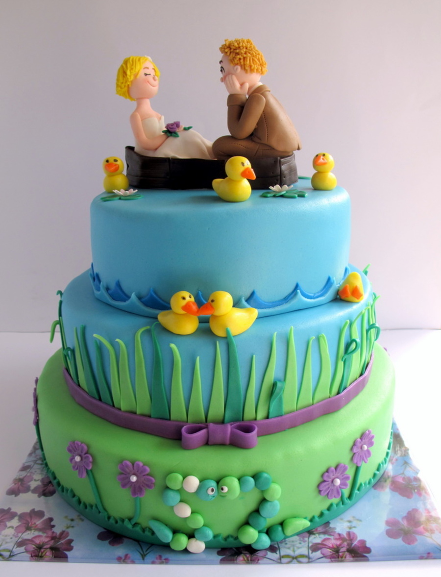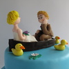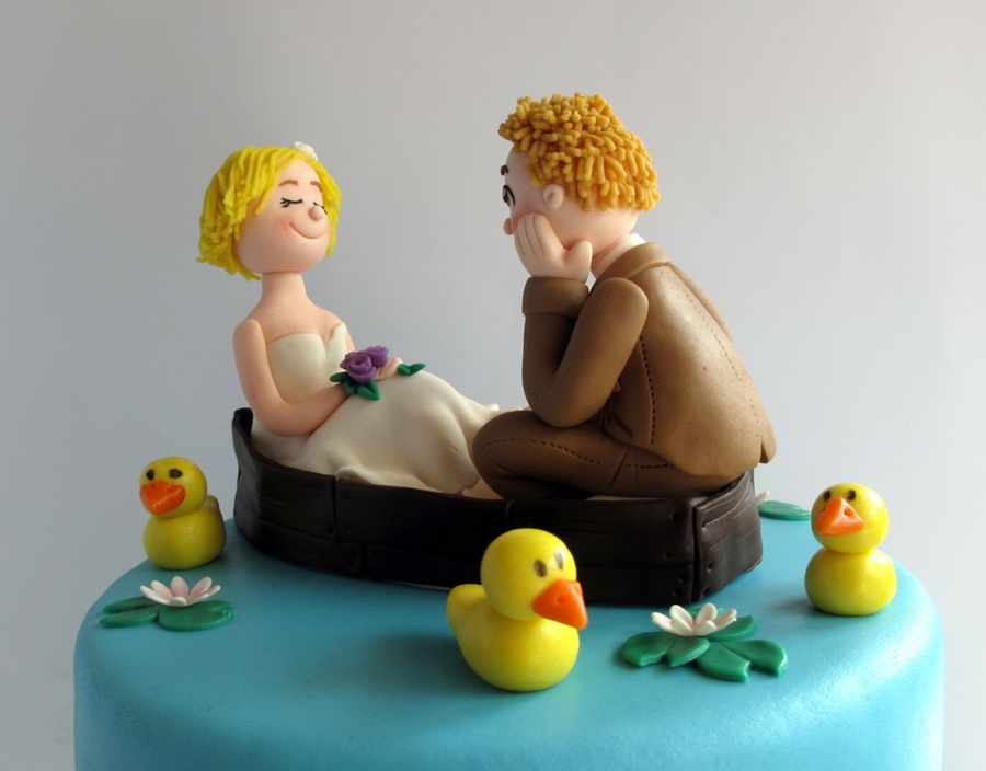 This couple asked for a playful cake, with the bride and groom in a boat!