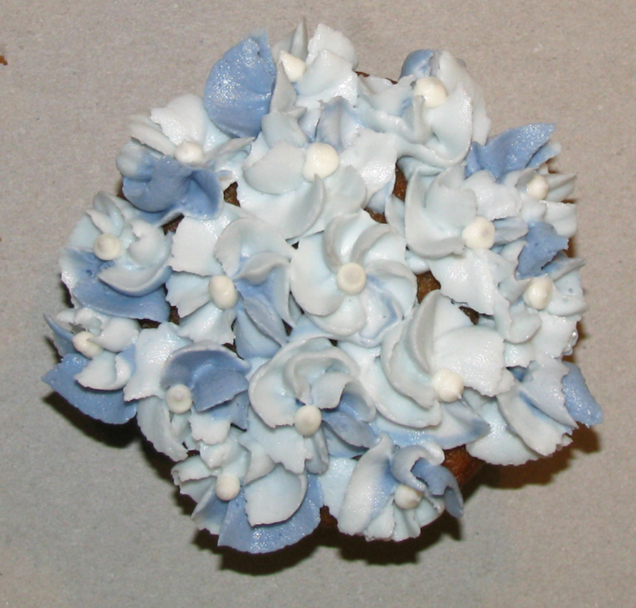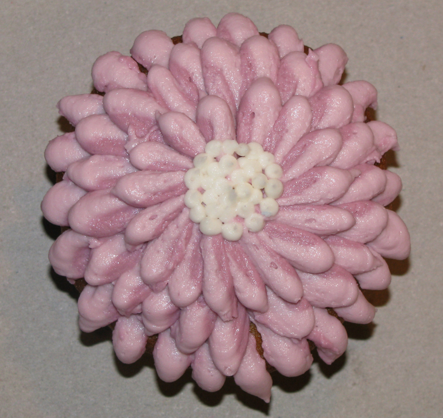 practicing flowers on cupcakes