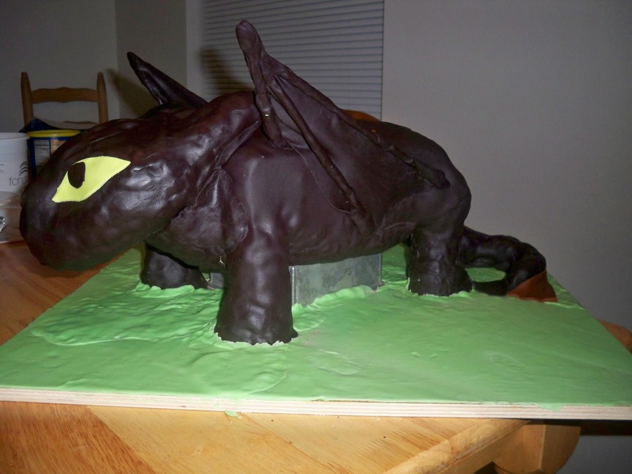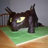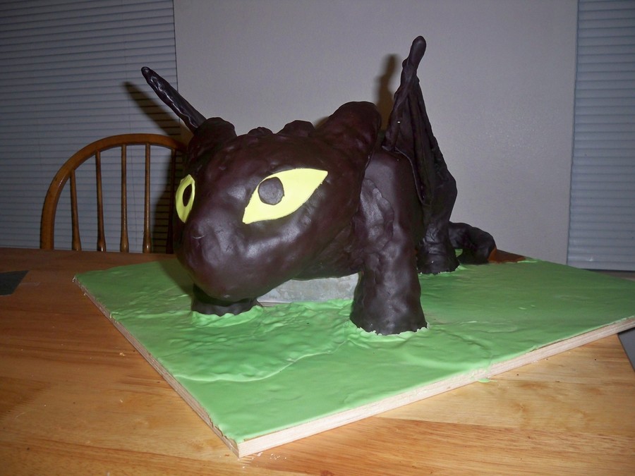 I was commissioned to make a birthday cake for a 5 yr old boy. He fell in love with Toothless from "How to Train Your Dragon" and wanted him as his cake. Created on May 30, 2010.