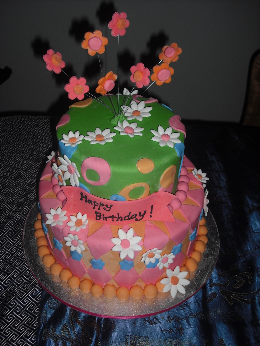 Design borrowed from brownidgrl65 here and not done as well! Chocolate mud cake with ganache and fondant.
