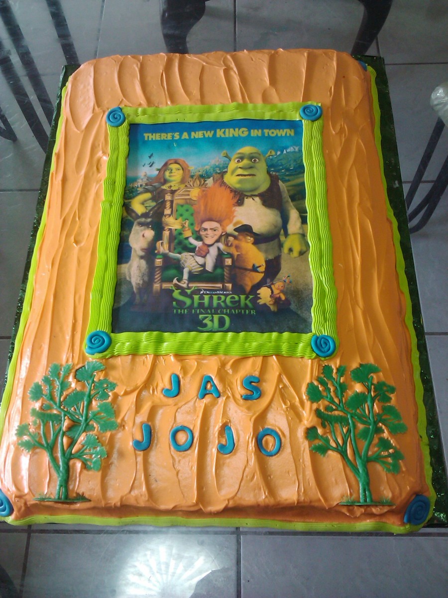 This was made for my grandchildren - Jasmine 6 and Josiah 2 whose birthdays are a few days apart. Edible image with cream cheese frosting - cake was half chocolate and half strawberry with strawberry filling.
