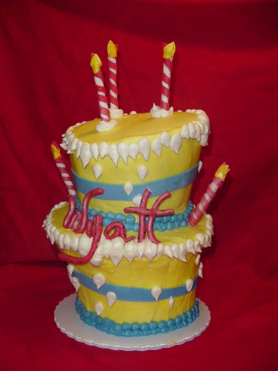 This was my furst attemp at a Topsy Turvy cake. Looked great, until it fell over during the night. I saved top, but I had to re-decorate. I had to completely re-do bottom. Fixed cake pic is coming next. I think I just made bottom to narrow.....among other things.