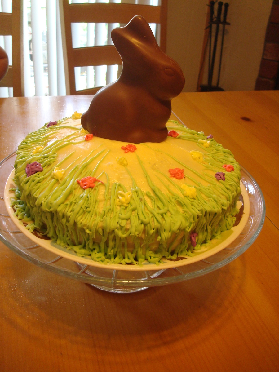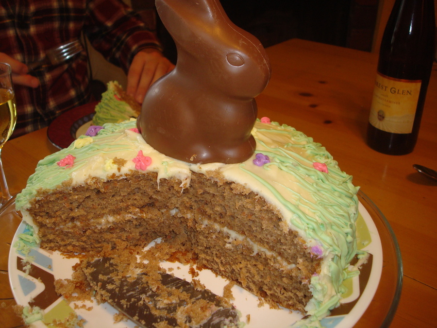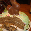 This was a carrot cake I made for Easter dinner this year. Once arrived, somebody threw a chocolate bunny on the cake and it really topped it off... literally. haha
