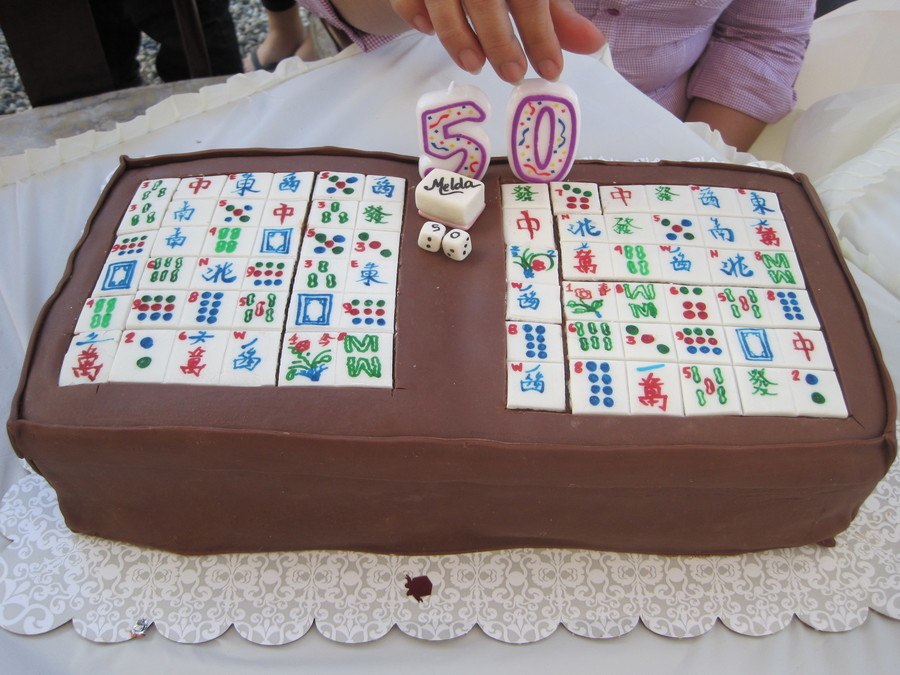 Chocolate Fondant w/ chocolate buttercream filling. Family put the "50" candle so she had something to blow out :)