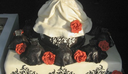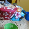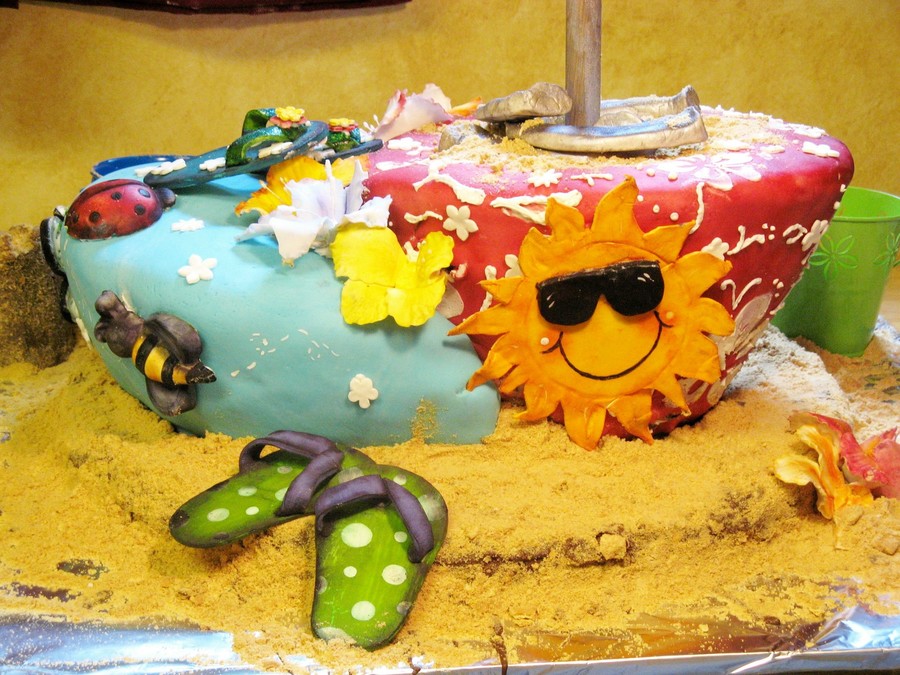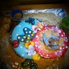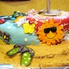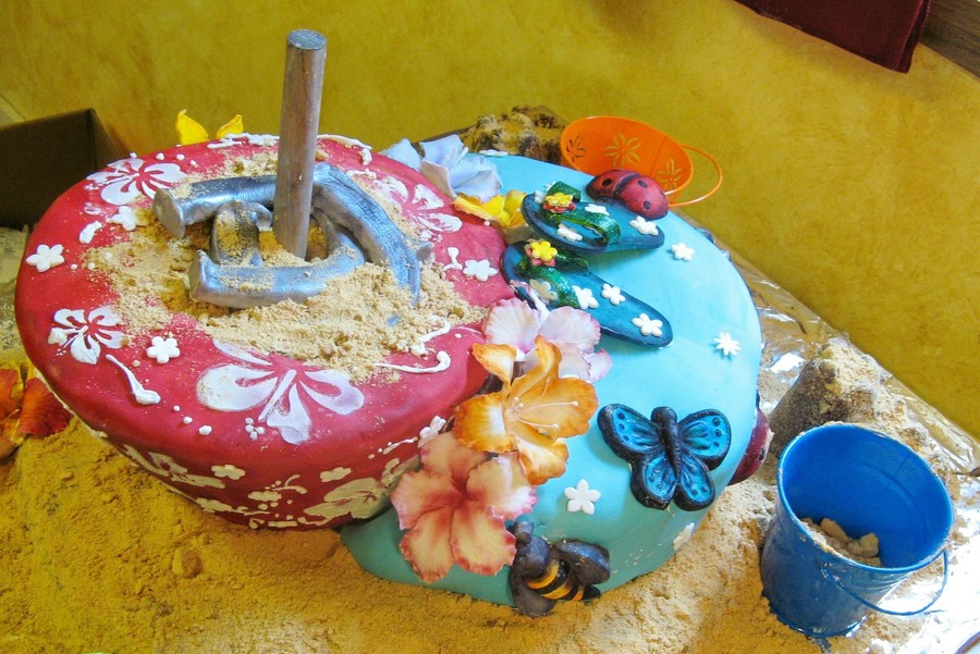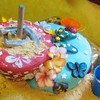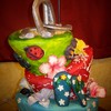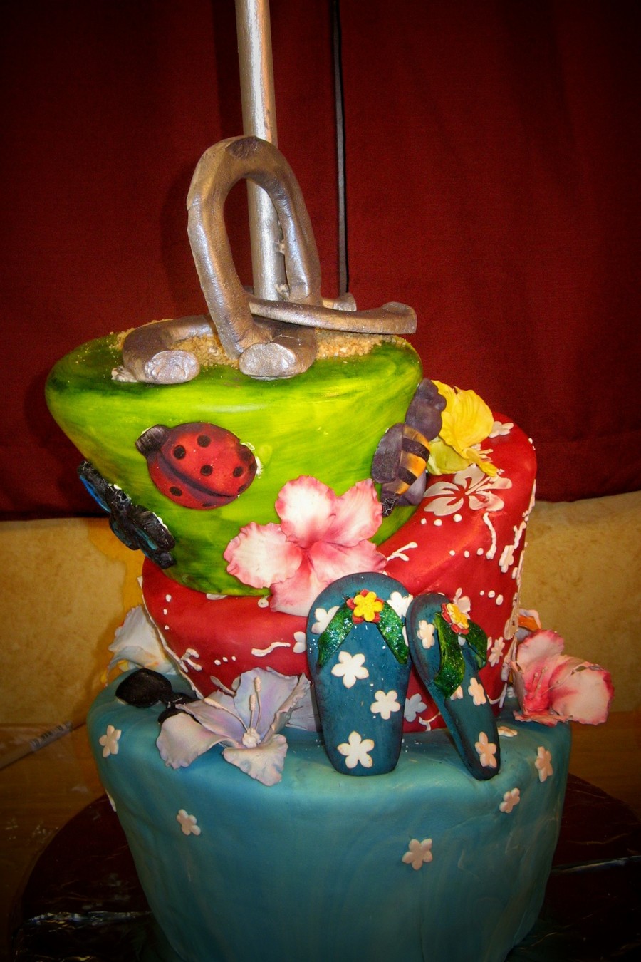 This started off as a topsy turvy cake which ended in disaster. This if the "repaired" version in which I had to change the layout. It was heart breaking but the end product wasn't so bad...Just not what I had planned on :(