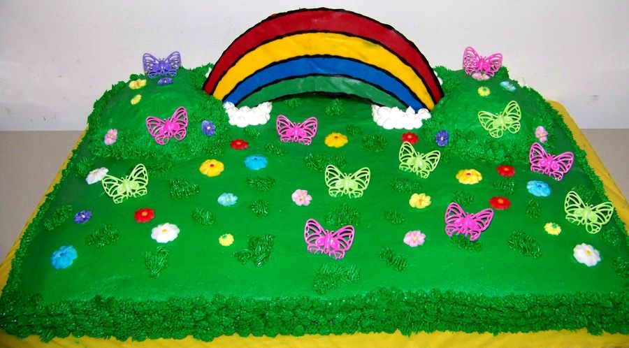 Rainbows, Butterflies & Flowers as requested by the birthday girl :) Chocolate rainbow, butterfly rings, dec-on & royal icing flowers.
