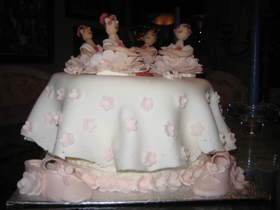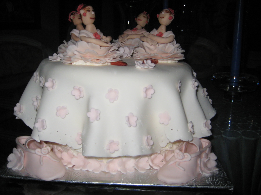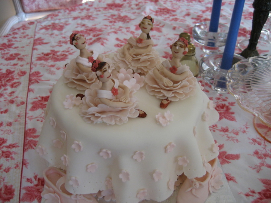 Need lots of practice for my figures. Made it for my 3 year old grandaughter's ballet recital and she loved it. White cake with mango filling and MMF for all the decorations.