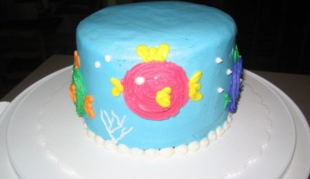 This cake was for a friend who didn't know the sex of her baby. We had an ABC baby shower theme to match the nursery. Frosted in BC with fondant cutouts.