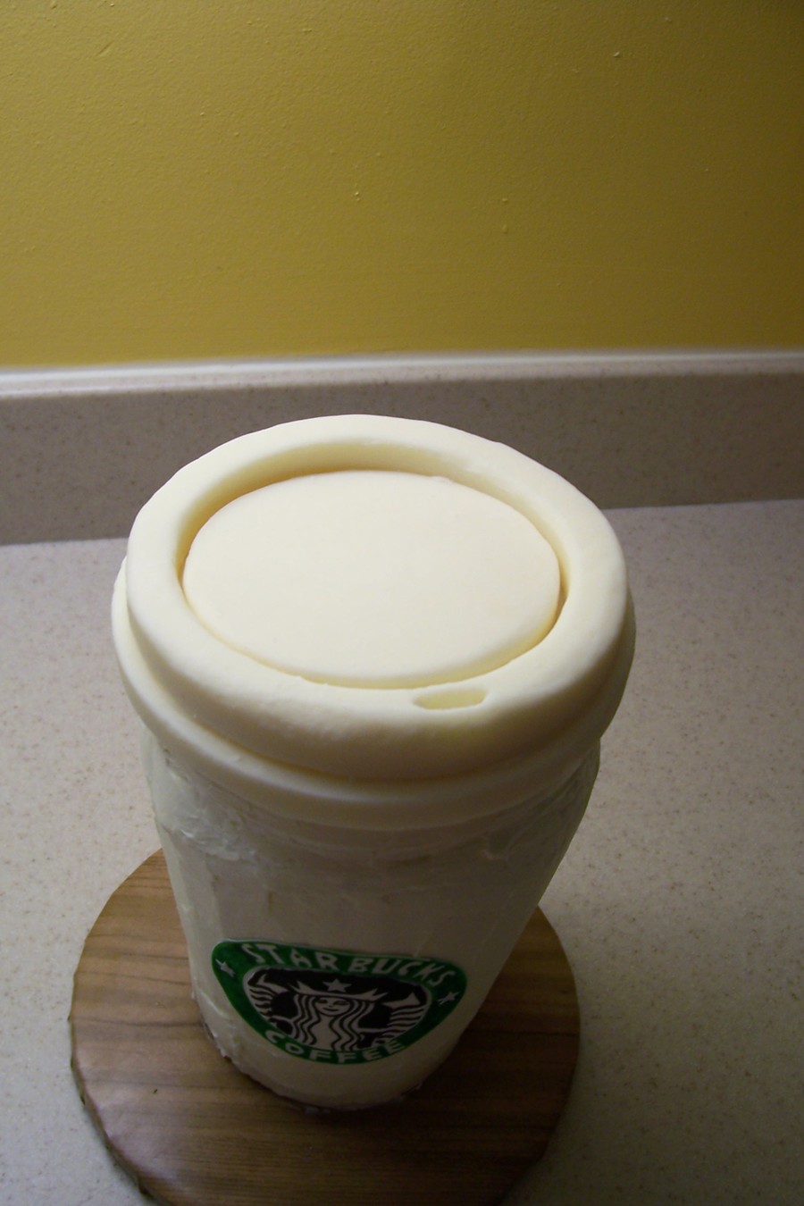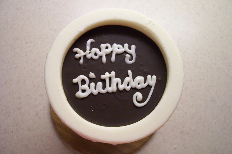 6" high chocolate cake with white chocolate lid that opens to a surprise message.
