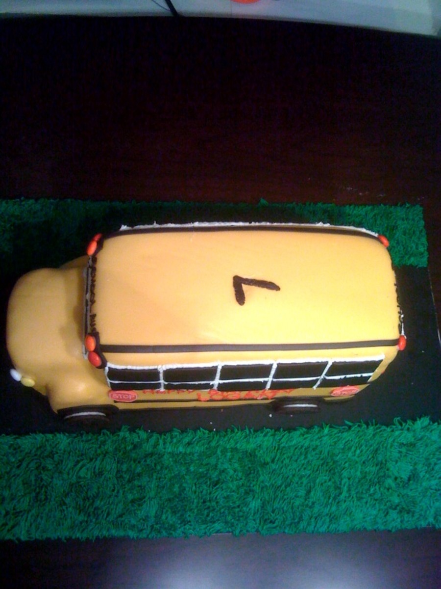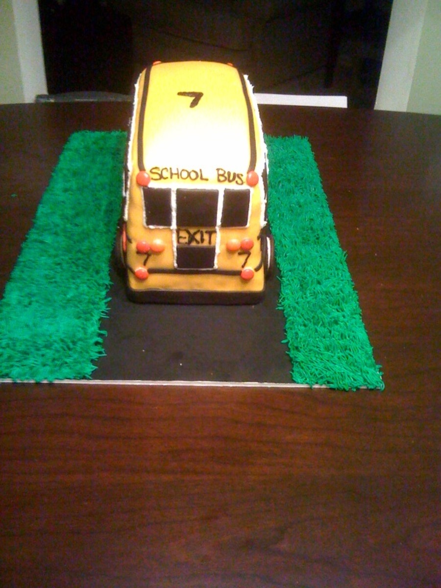 This is my first school bus for a 7 year old boy. The bus was actually pretty long. I have no idea why it looks like a "short bus." I guess I need a better camera than an iphone. Everything is edible. It was carved from 2 11x15" cakes. The wheels are Oreos and the lights are m&ms.