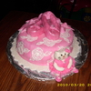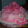 vanilla cake with lemon and raspberry filling covered in mmf , this was for my daughters 4th birthday she loved it and of course it had to be pink, it was the first time i tried brush embrodiery , I think it turned out ok , the ballet shoes are made from rice kripys covered in fondant with pearl dust