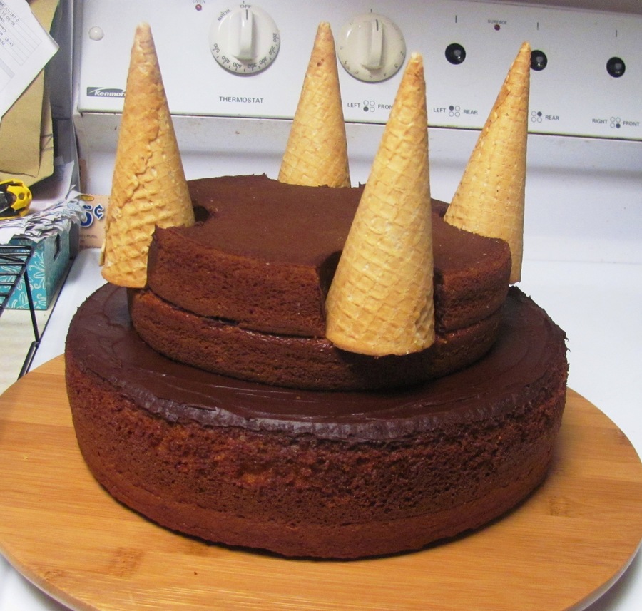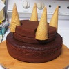 6th birthday cake made with: buttercream frosting, 3 round cake layers, 4 ice cream cones