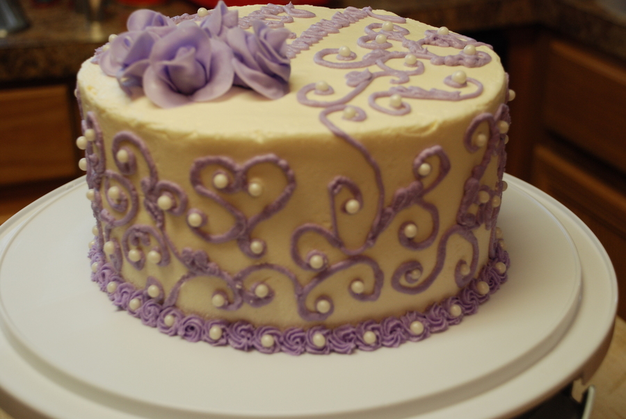 WASC with buttercream frosting, fondant roses, and pearl dragees. Inspired by another cake on here.