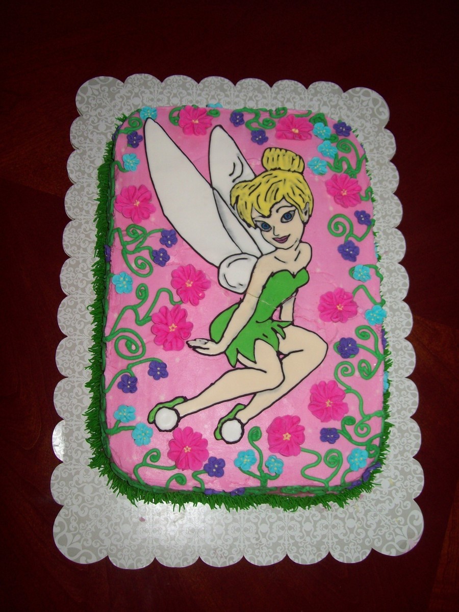 Iced with buttercream decorated with royal icing flowers, & color flowed Tinkerbell!!!
