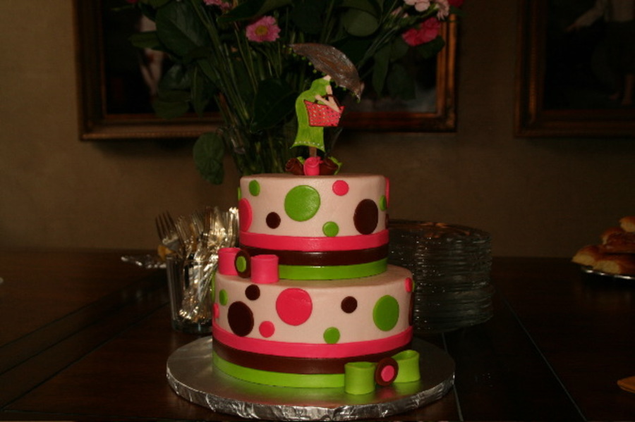 For my SIL who flew in from CA for her baby shower. At 37 she's having her first and we are too excited!! Yellow and Choc cakes with BC icing and MMF decorations. Woman was taken from the invitation and is gumpaste painted. Sorry, not a great pic forgot to take one before I left :) TFL