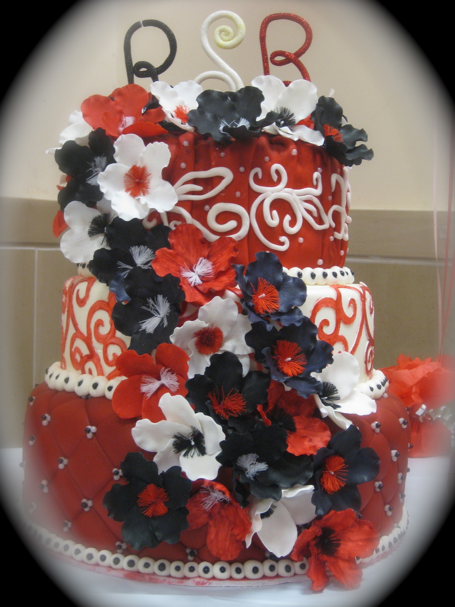 Three tier Sweet 16 cake with Tie Dye Cake in the middle! The middle tier design was cut with the Cricut Expression!