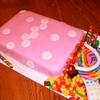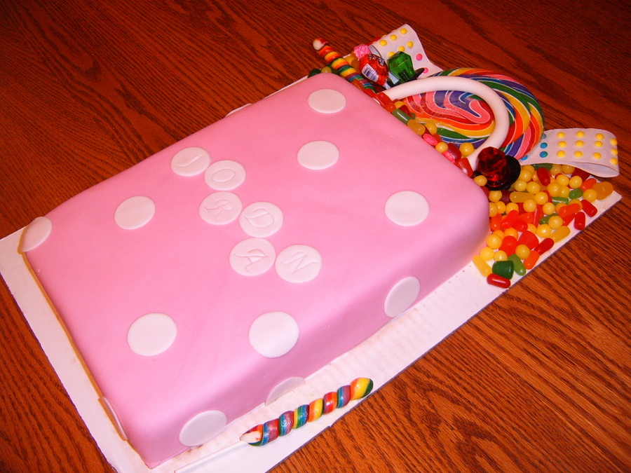 My daughter wanted a bag of candy cake for her birthday. She had so much fun sticking all the candy on it.