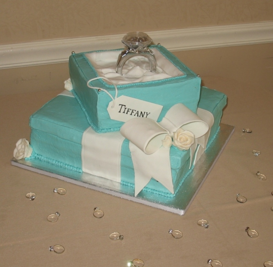 My first attempt at a stacked set of square cakes, and first time doing the classic Tiffany ring box style. This was for a bridal shower for a woman named Tiffany so it was the perfect opportunity to try it. The party planner requested all BC and as little fondant as possible, so I tried my best to get good edges with my BC. (I was having some issues with it crusting too soon, so I think the consistency may have been too thick).