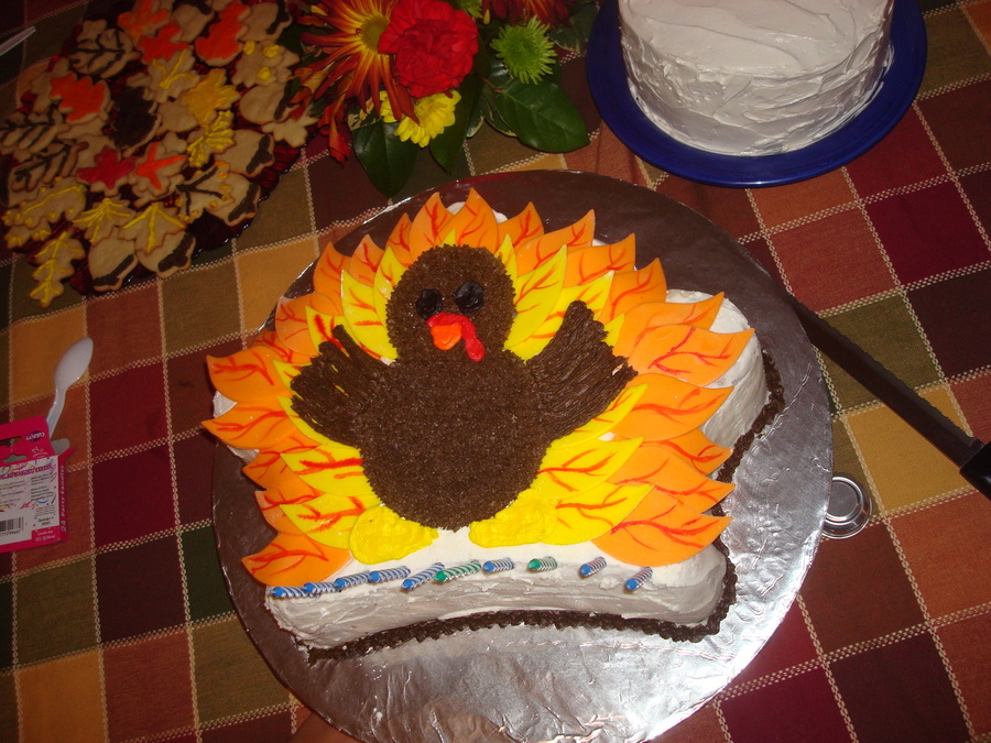 I made this cake for my cousin. His birthday usually falls on Thanksgiving or the day after. I think the new tradition is for him to get a turkey cake!