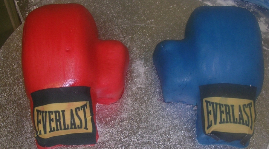 Lemon cakes with fondant boxing gloves for boys birthday