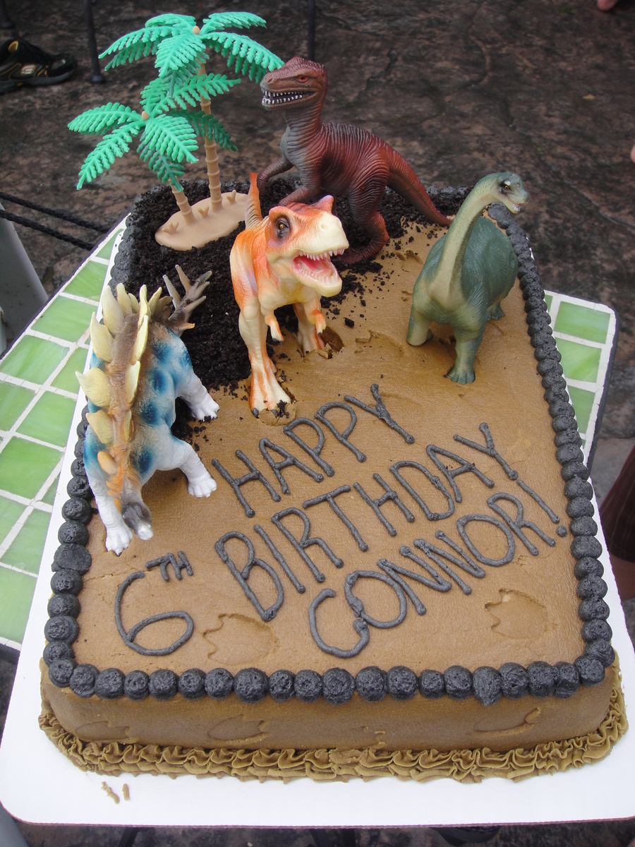 Chocolate cake, bevarian cream filling and white bc. Birthday boy decided he wanted 4 dinos on there instead of the 3 that I put on! So much more "his" then!