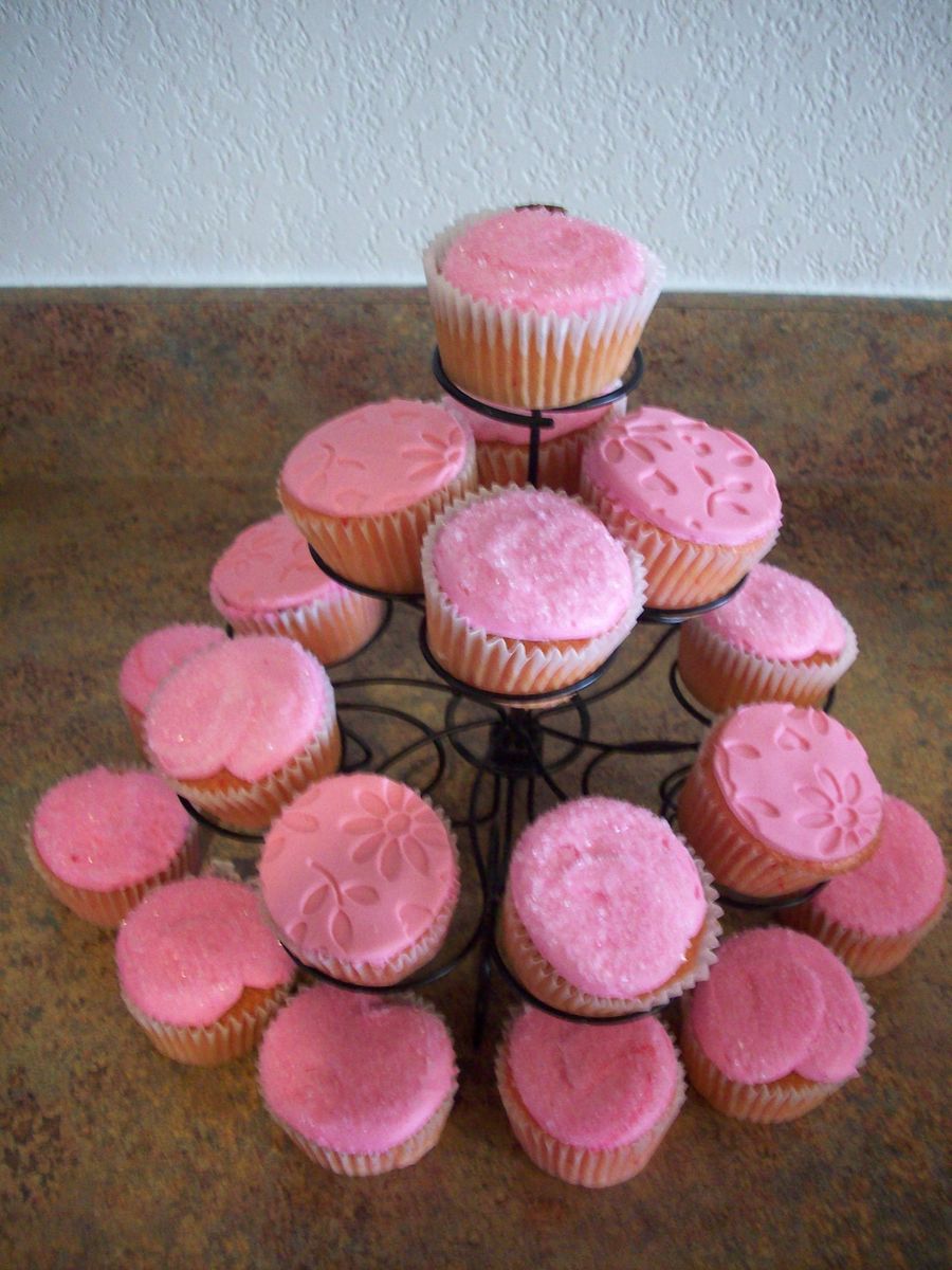 cupcakes for a bridal shower using an impression mat and cake sparkles