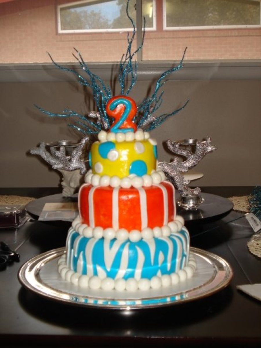 This was my first multi tiered fondant cake. The party was nemo themed and so I matched the colors.