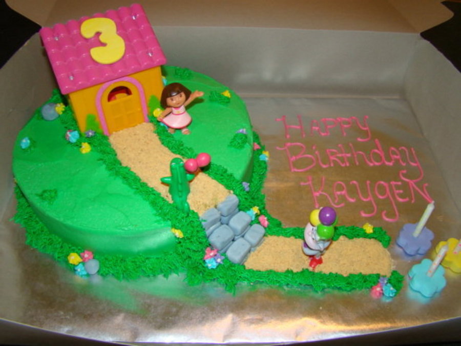 This was for my niece. Dora's suprise party. White cake with spinkles inside and bc. Bought the house to go on top. TFL!