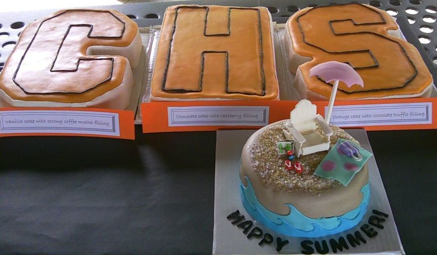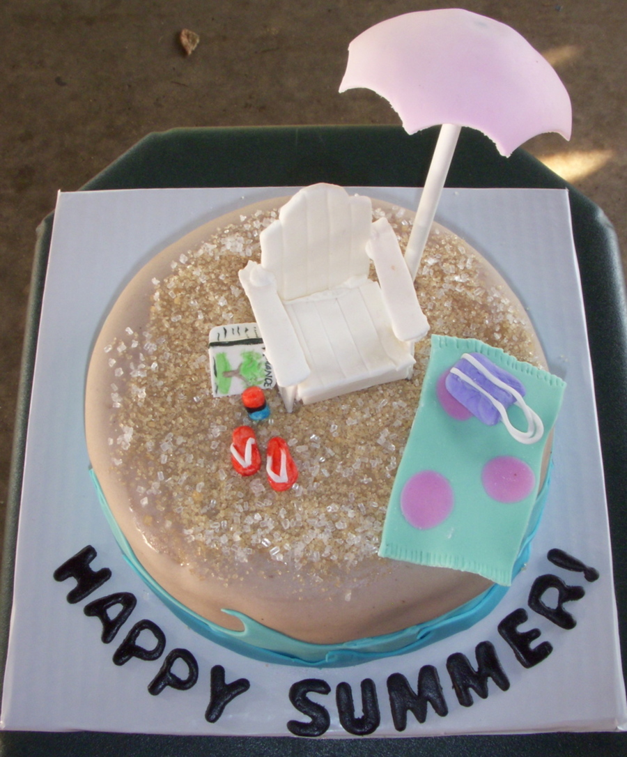 Made 4 cakes for my school's end of year party- did the school letters, but they seemed booring so I added a small beach cake inspired by several recent ones here on cc.