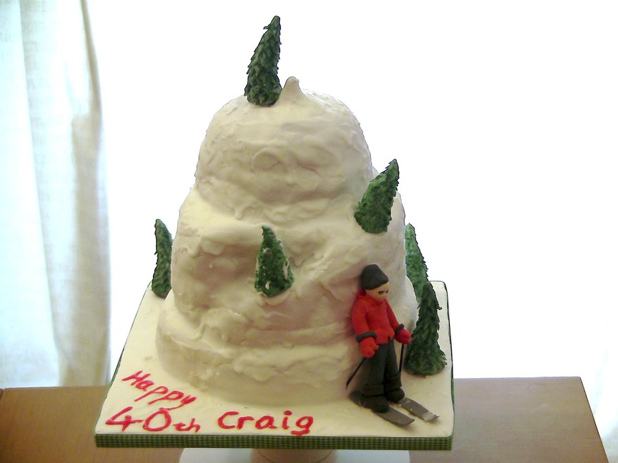 Chocolate cake covered with fondant and some royal ice. Trees and figure made with fondant mixed with CMC.