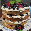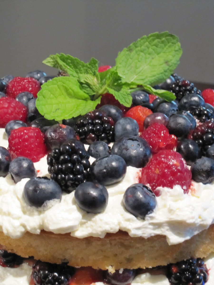 I made this cake for my mom's 65th birthday. White almond sour cream cake with swiss meringue buttercream and mascarpone frosting layered with fresh berries. This cake tasted amazing!