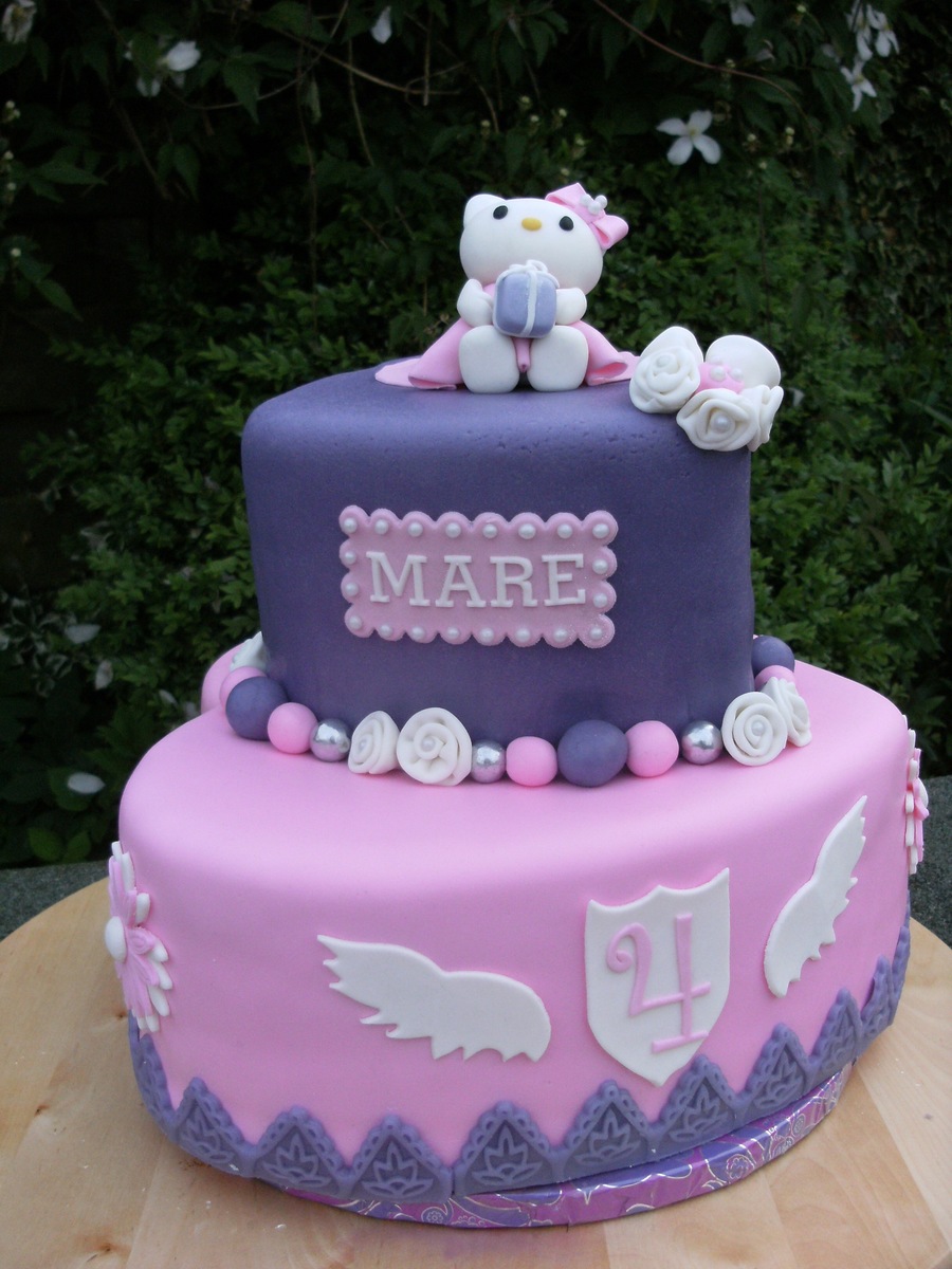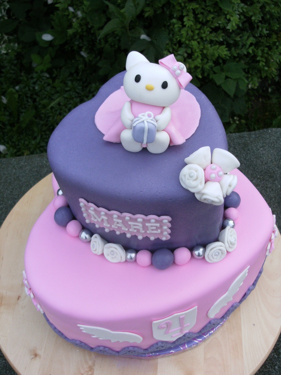 my first hello kitty, covered with fondant. kitty was made with fondant, isn't she cute?