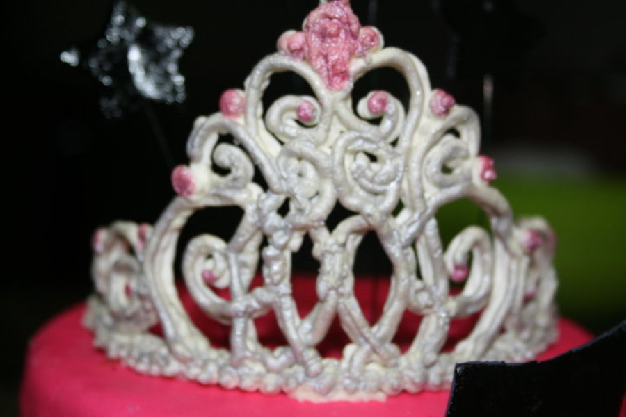 Made this cake for my sister. MMF covers cake. Royal icing tiara.