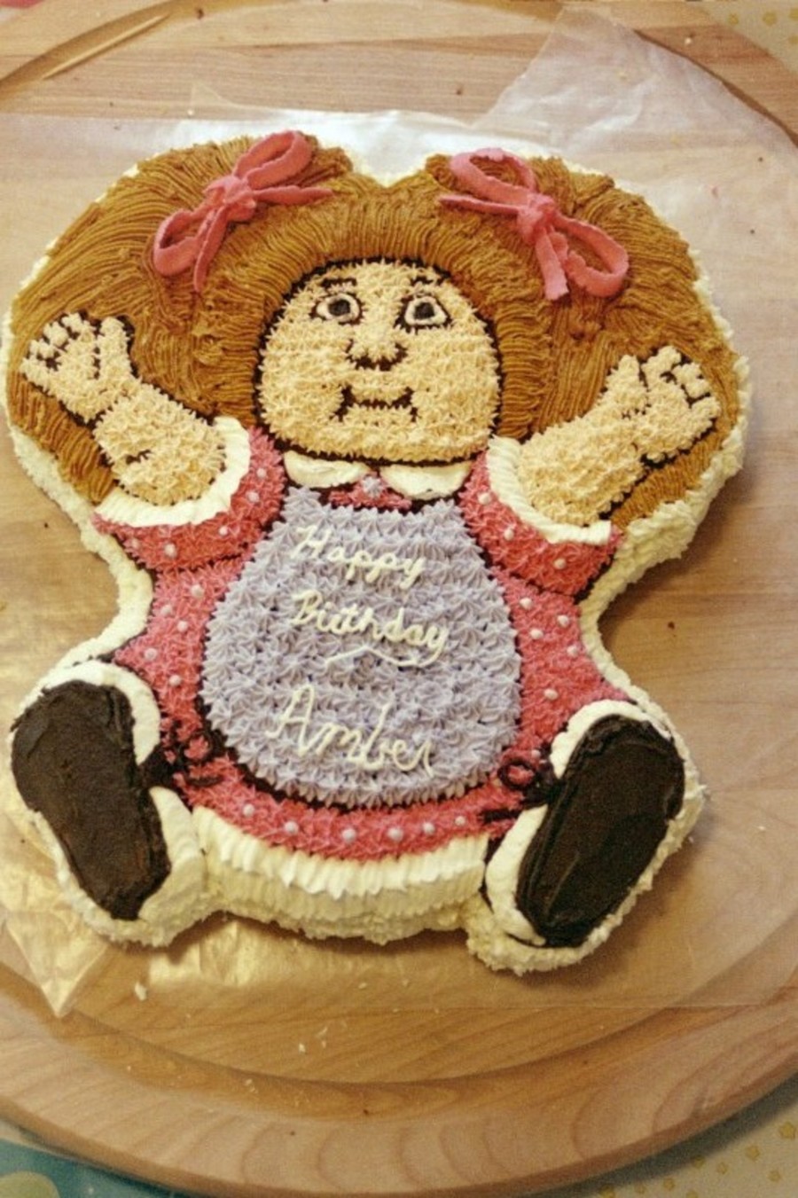 This is an old Wilton pan of the Cabbage Patch Kids. I made this for my daughters second birthday. It is done in Wilton's traditional butter cream frosting. Thanks for looking and happy creating!
